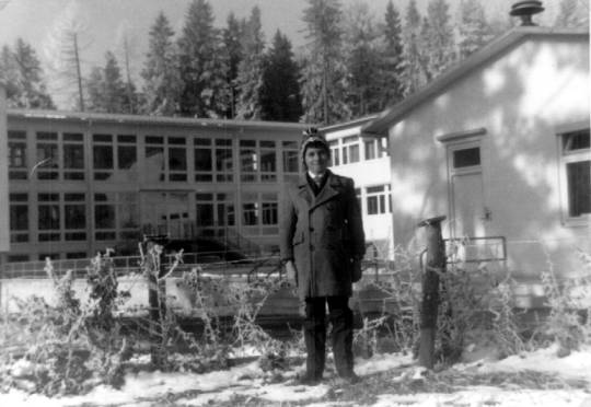 Harti vor dem Schulgebäude